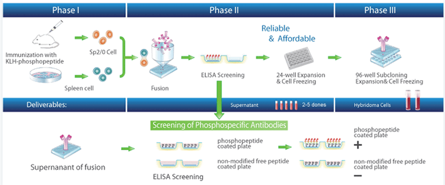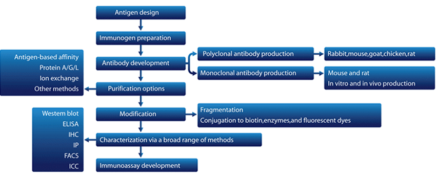 - Antigen preparation (peptide design, peptide synthesis, carrier protein conjugation, recombinant protein production)